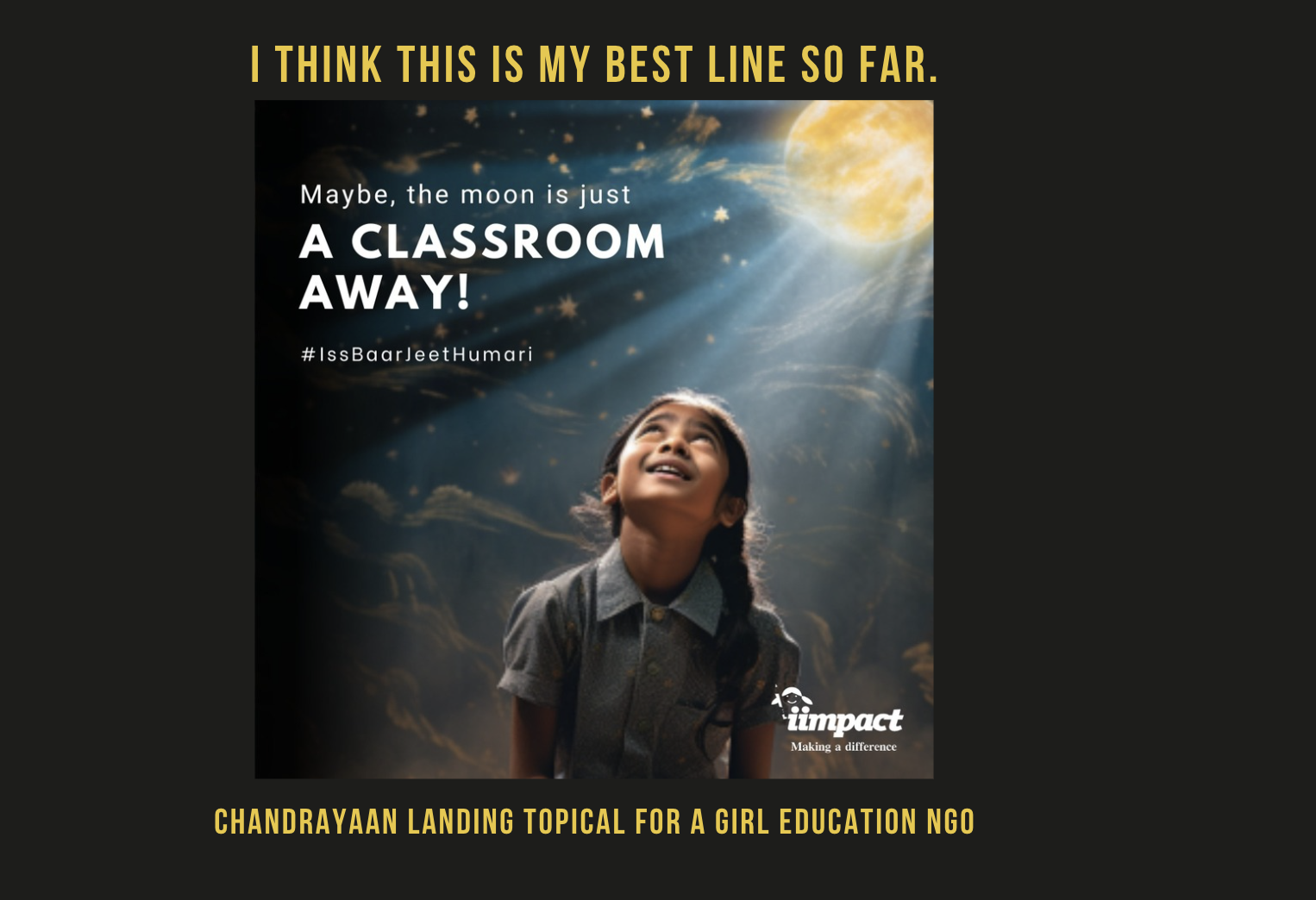 Headlines from briefs where I owned positioning or lead-copy, across the last six years. Some shipped as hero lines, some as campaign spines, some as the single sentence that convinced the room. More available on request.